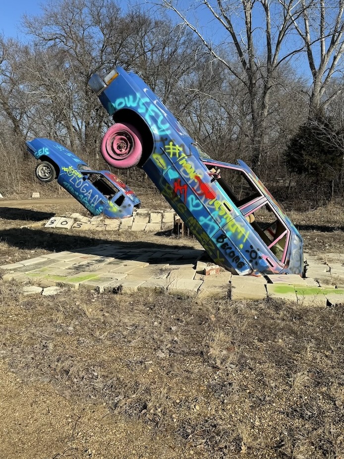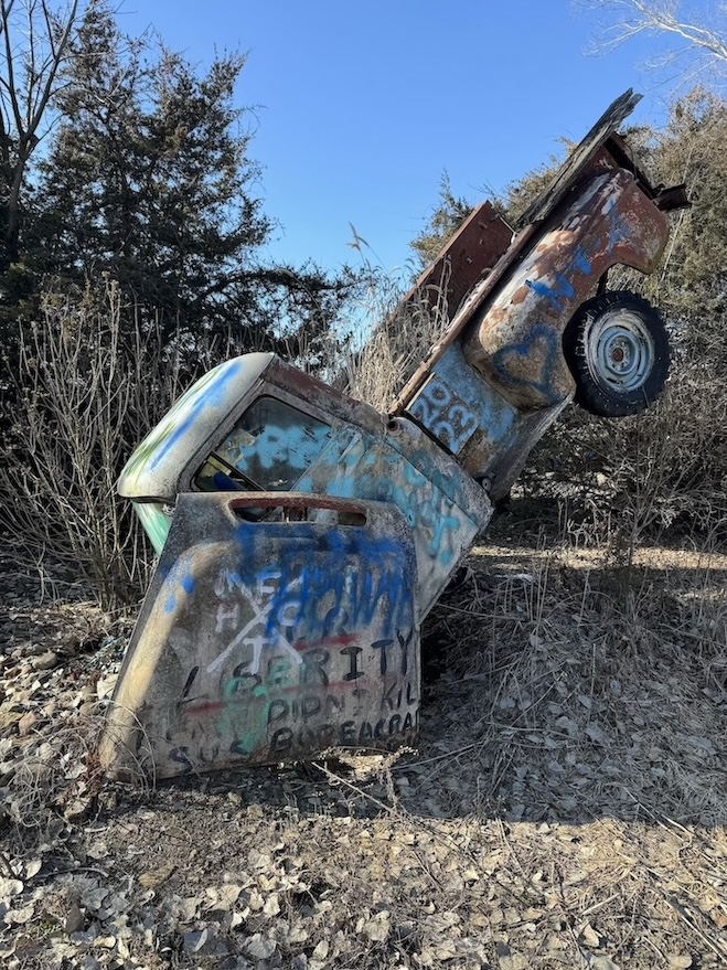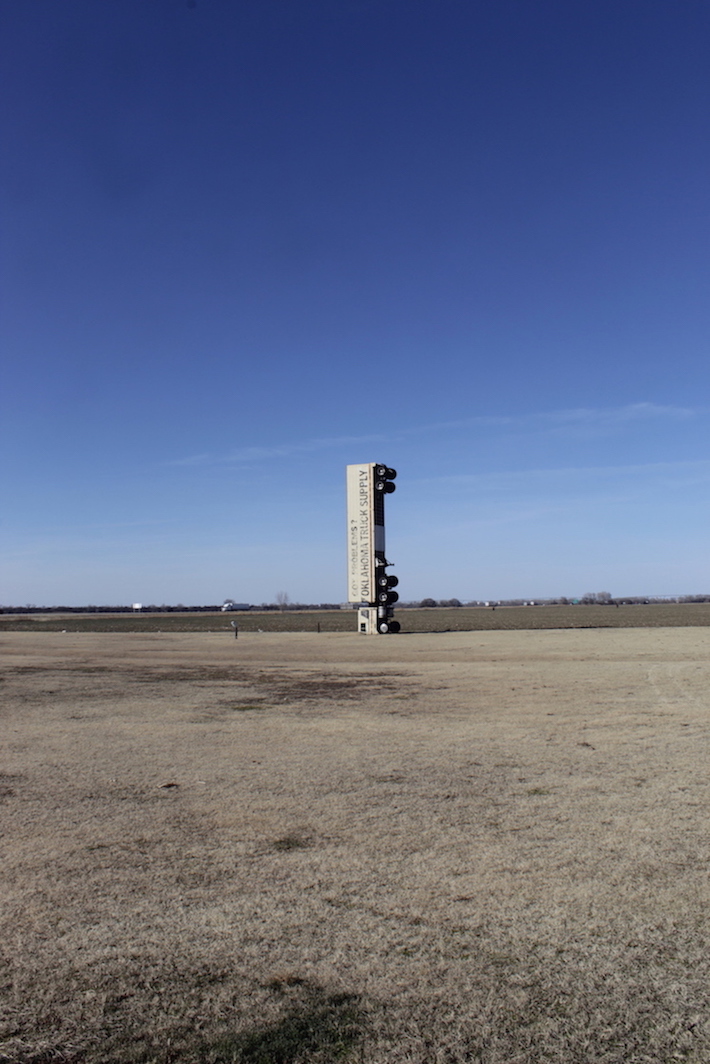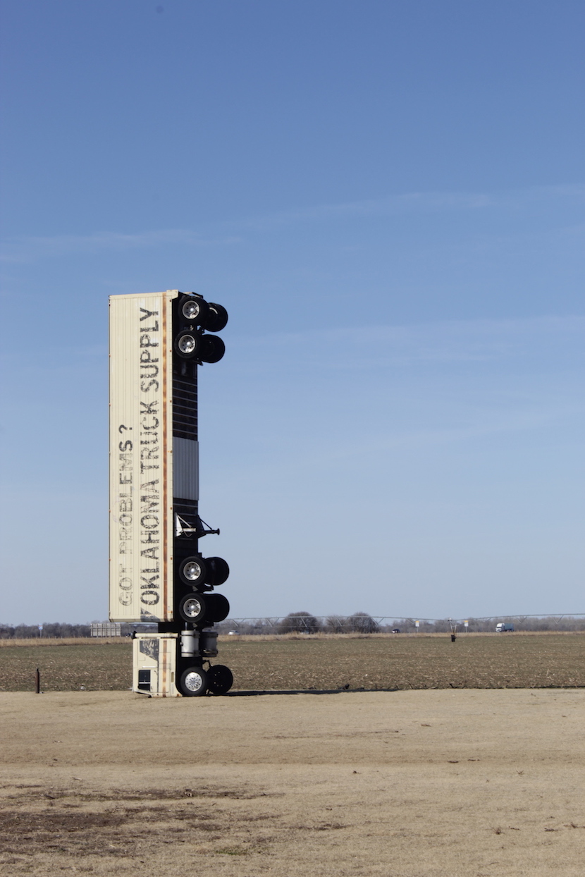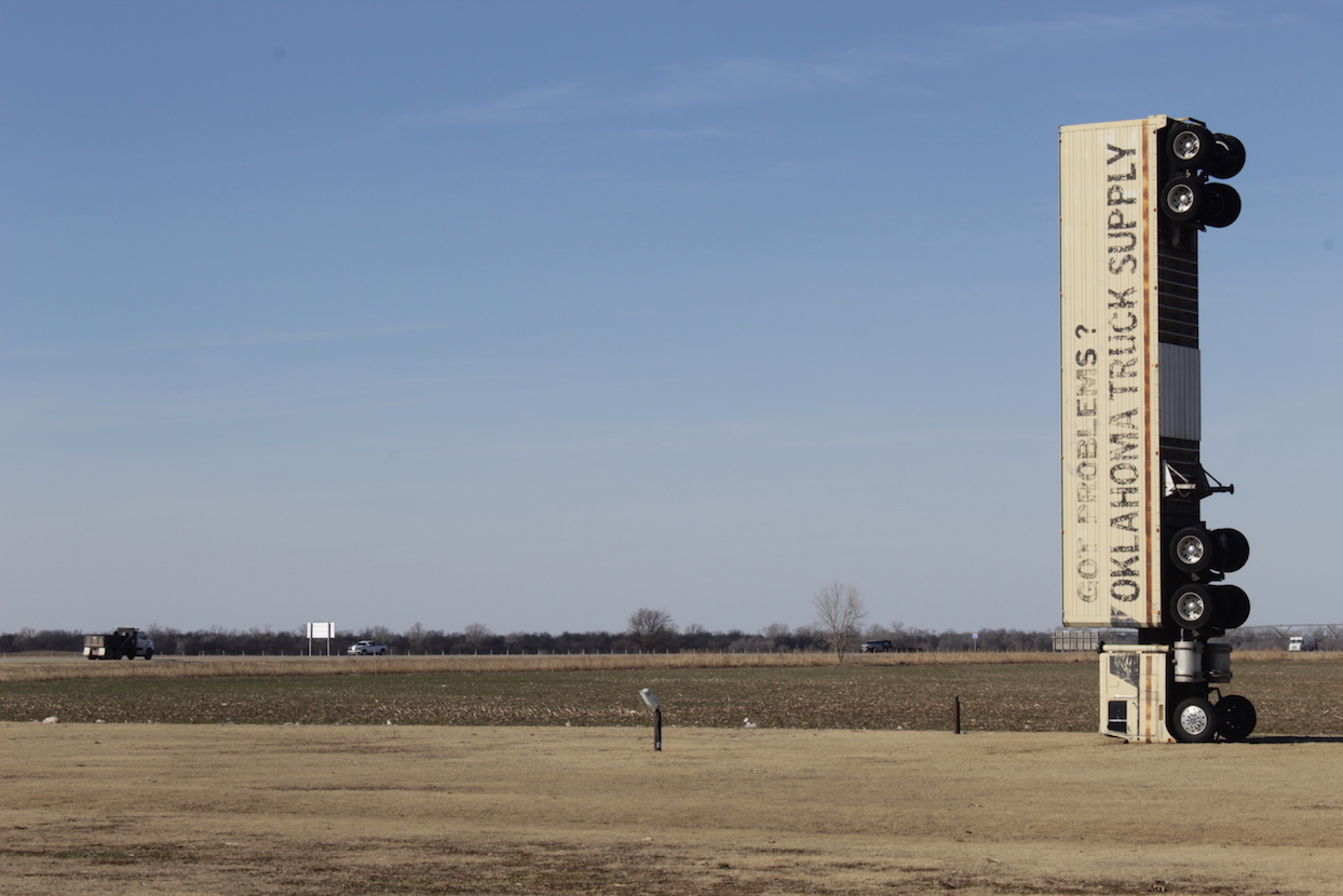About an hour south of Wichita, Kansas and just over the state border in Tonkawa, Oklahoma is one of my favorite roadside attractions in the country, the Upended Truck. This 18-wheeler was somehow turned vertically upwards to stand on its nose as an advertisement for Wilkins Oklahoma Truck Supply. There’s not much to do here besides look at it, but for some reason this spot really captures my heart and imagination. Maybe it’s my tenuous grasp on the concept of gravity?