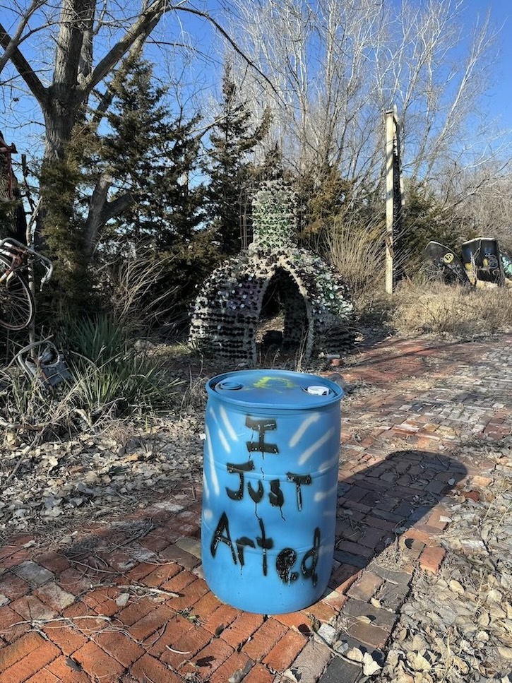I actually drove past the Garden of Eden by chance and thought about pulling over when I saw the outdoor sculptures, but I was too confused and a bit creeped out. It’s a giant art project built in and around the artist Samuel Perry Dinsmoor’s early 20th century home, and without knowing about it in advance, I wasn’t sure if it was open for tours. It turns out the exterior sculptures are always open to viewing, and interior spaces, including the home and the mausoleum containing the artist’s on-display remains, can be viewed via $9 guided tours with different hours seasonally.