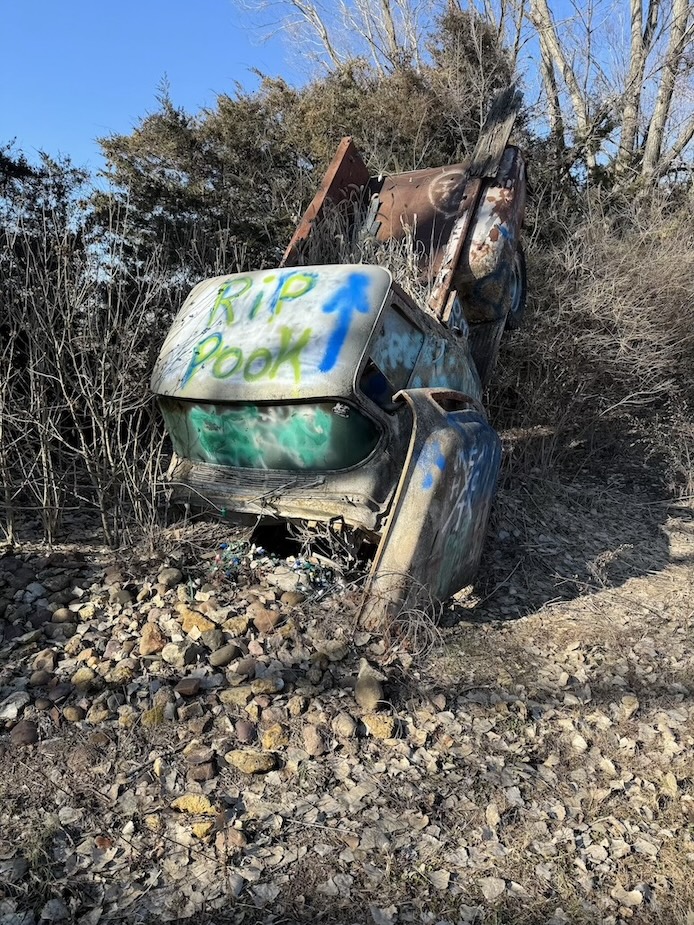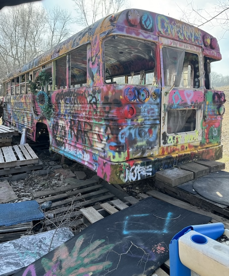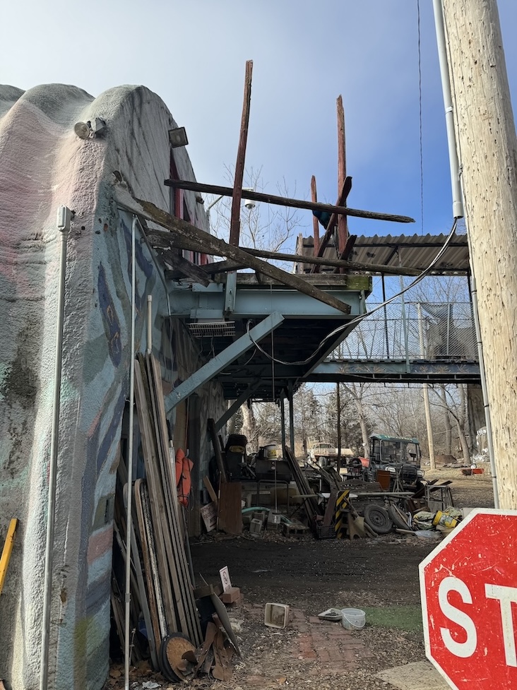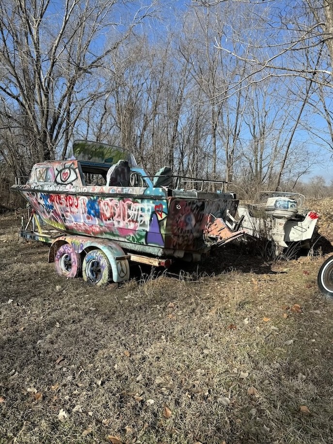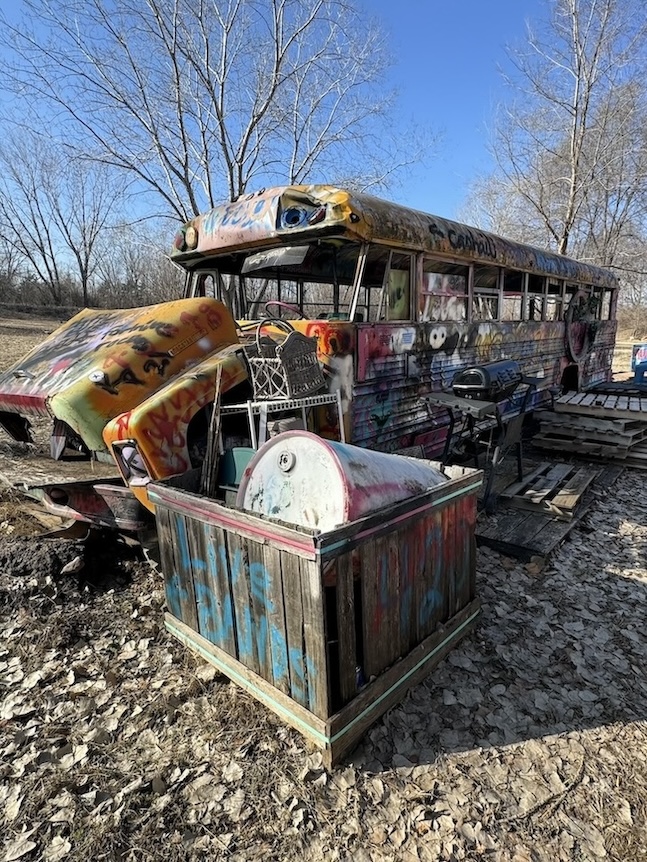Linda appeared on a raised platform porch above my head and explained how the Lessmans stuck it to the man by turning their vintage trucks into art instead of getting rid of what the county considered to be junk. Over the years they’ve expanded their art park by adding a “boathenge” and other curiosities. The property also has a shooting range, a 30 acre fishing pond, and, based on the giant plywood signs with arrows pointing to “Hip-Hop” this way and “EDM” that way, has functioned as a festival ground.