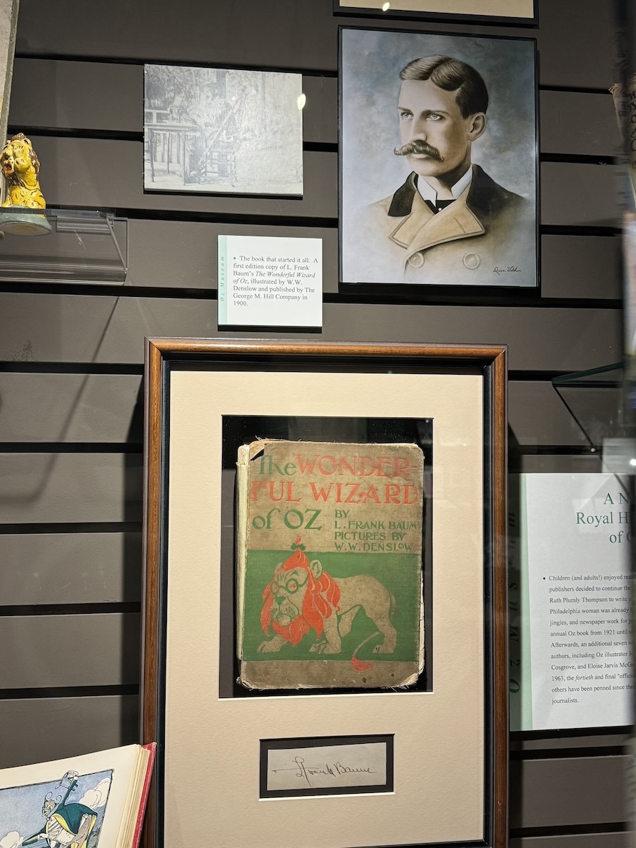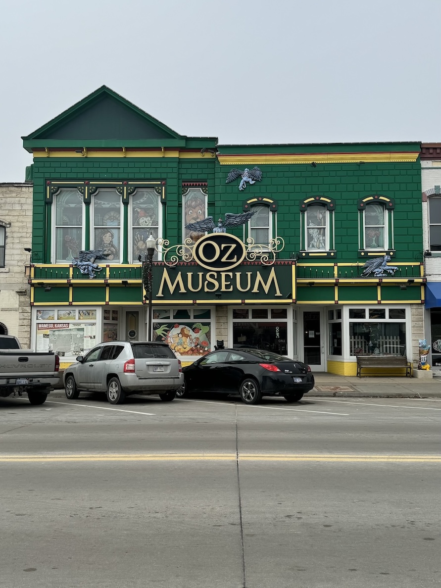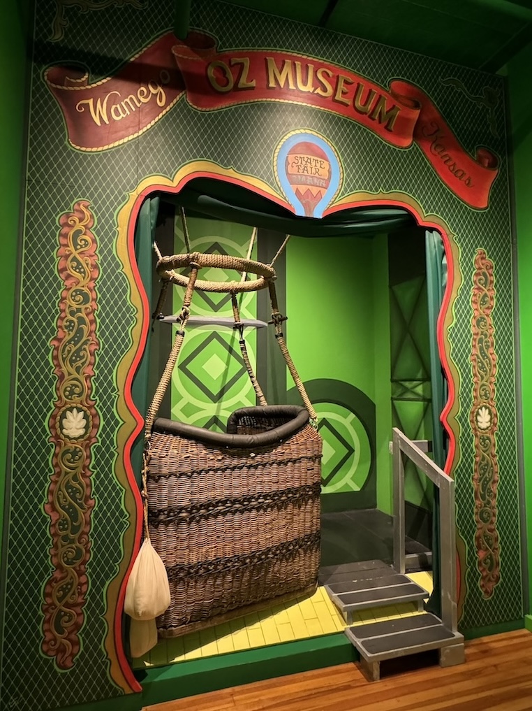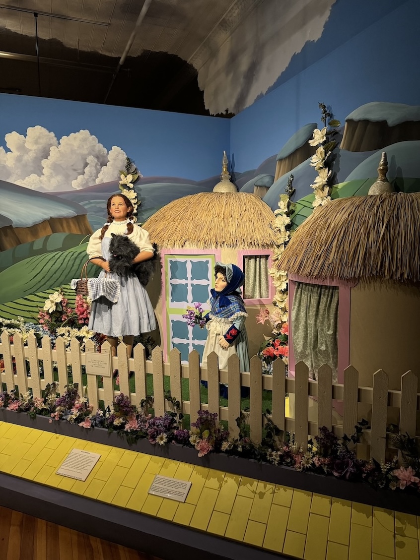 The Oz Museum in Wamego, Kansas is an easy detour on the way to Topeka, so it’s a bit of a “why not?” stop. That said, unless you’re really a huge Wizard of Oz fan, you may not find it worth the $10 admission. A lot of the exhibits are about the success and marketing of the books and the film, looking at the cultural impact of the Wizard of Oz. There are first editions of books, vintage toys and posters, and costumes worn by some of the side characters on display, but there are not many artifacts or costumes related to Judy Garland or the other lead actors from the 1939 movie. I did enjoy a hand painted storyboard created by the MGM team and a prop weapon from the film that was loaded with flowers instead of bullets.