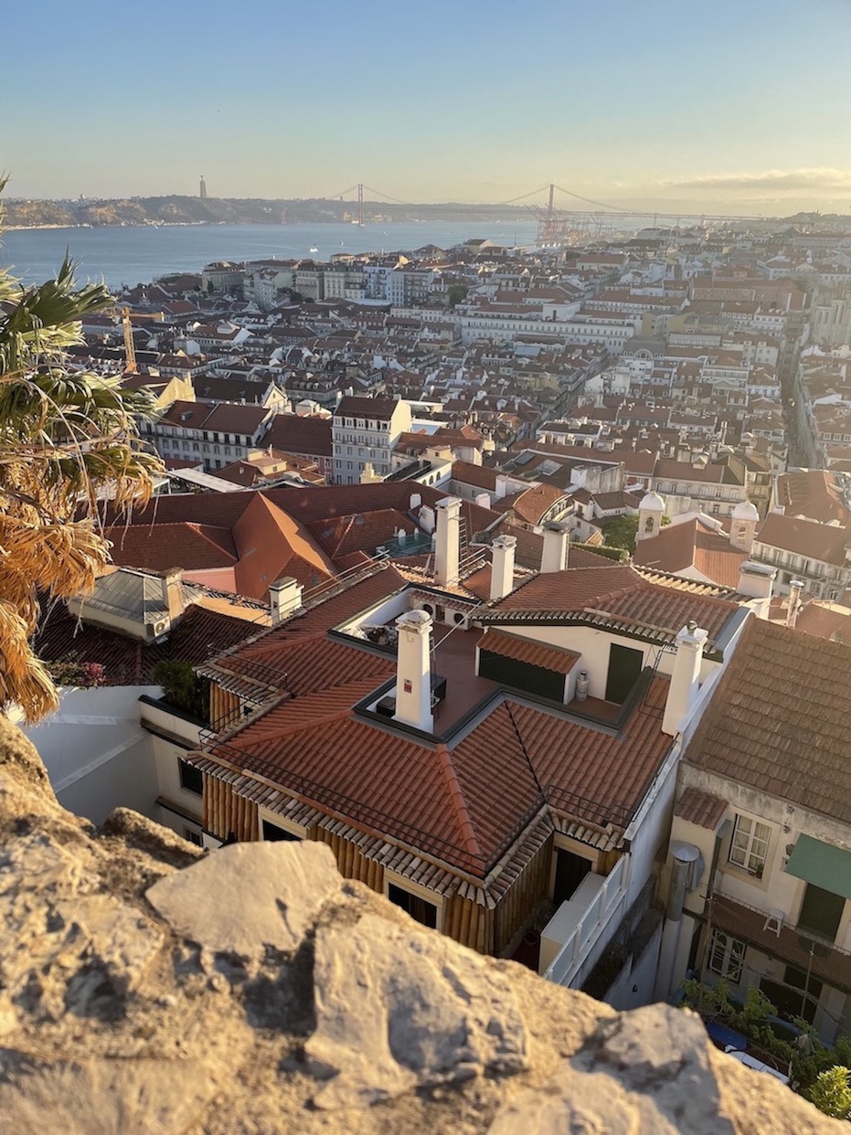 The castle is in the Alfama district of Lisbon, which is full of colorful buildings and quirky street life moments. If you enjoy wandering the streets when you visit a new city, this neighborhood is a great start. Depending on when your flight got in, if you have some extra time before visiting the castle, go for a wander in Alfama and be sure to stop at Pastelaria Alfama Doce for a famous Portuguese pastel de nata pastry! They are open from 8am-7pm (but are closed on Sundays) so you’ll want to stop here prior to the castle instead of after sunset.