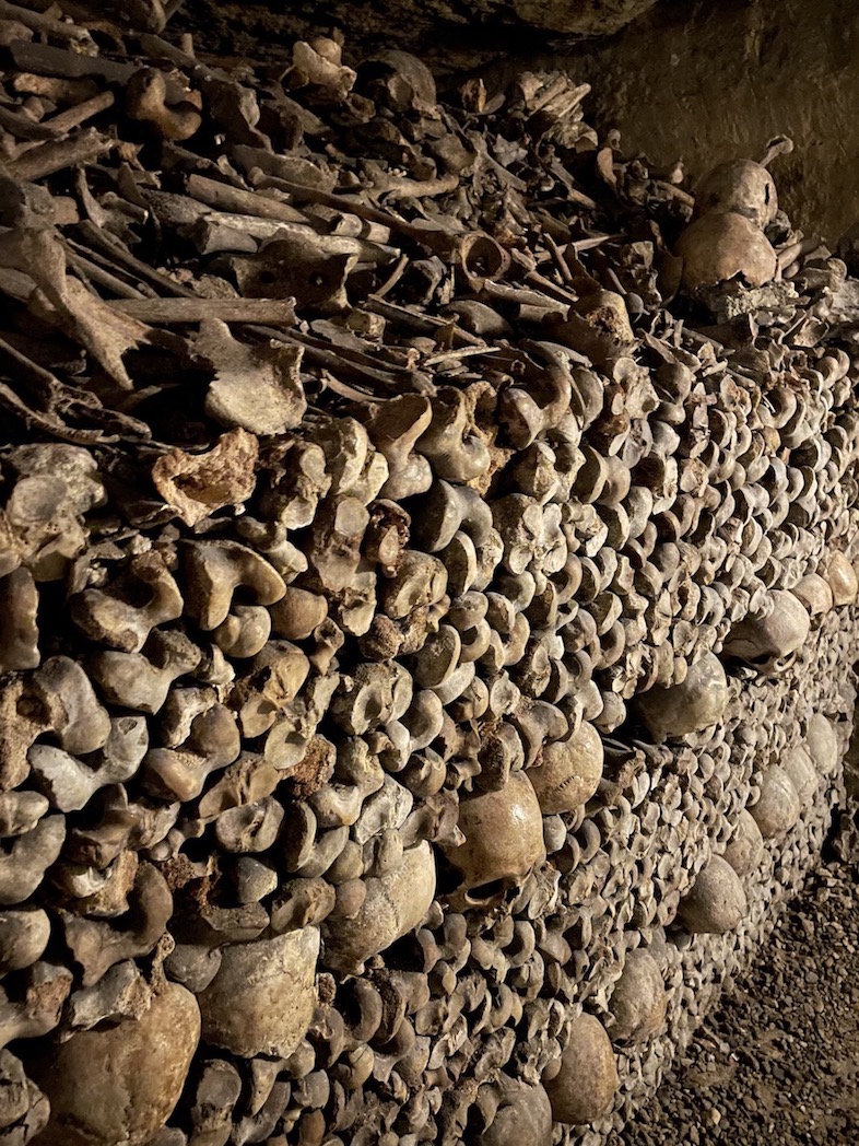 What I enjoyed most about the Paris Catacombs is the ability to get up close and personal with the bone arrangements. While using human anatomy to create “art” may be of questionable taste and invite visitors to wonder whether these souls are having a very restful slumber, it also inspired me to reflect on French history. I considered what the lives of those interred must have been like. Did the person whose skull I’m beholding experience the French Revolution? The reign of Charlemagne? The Merovingian era? Since I am not French, malheureusement, it was also a tangible demonstration and reminder of how much world history has occurred that has nothing to do with me at all. The ossuary gave me the opportunity to be a spectator of centuries upon centuries of lives; entire empires as they rose and fell, rose and fell, rose and fell; an entire culture and its evolution. It was all materially represented there before me in one small space, and “memento mori” -esque signs made it clear that such meditations are encouraged.