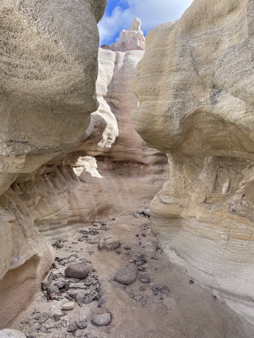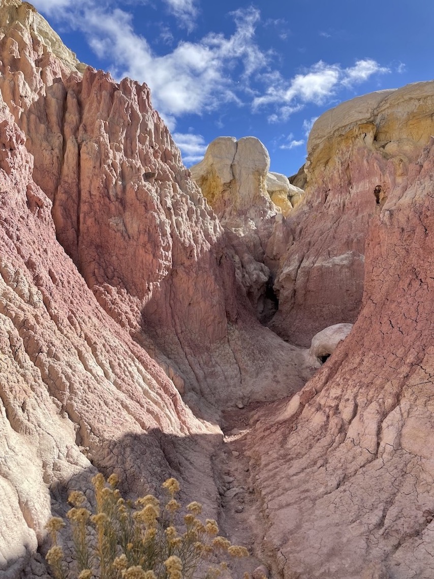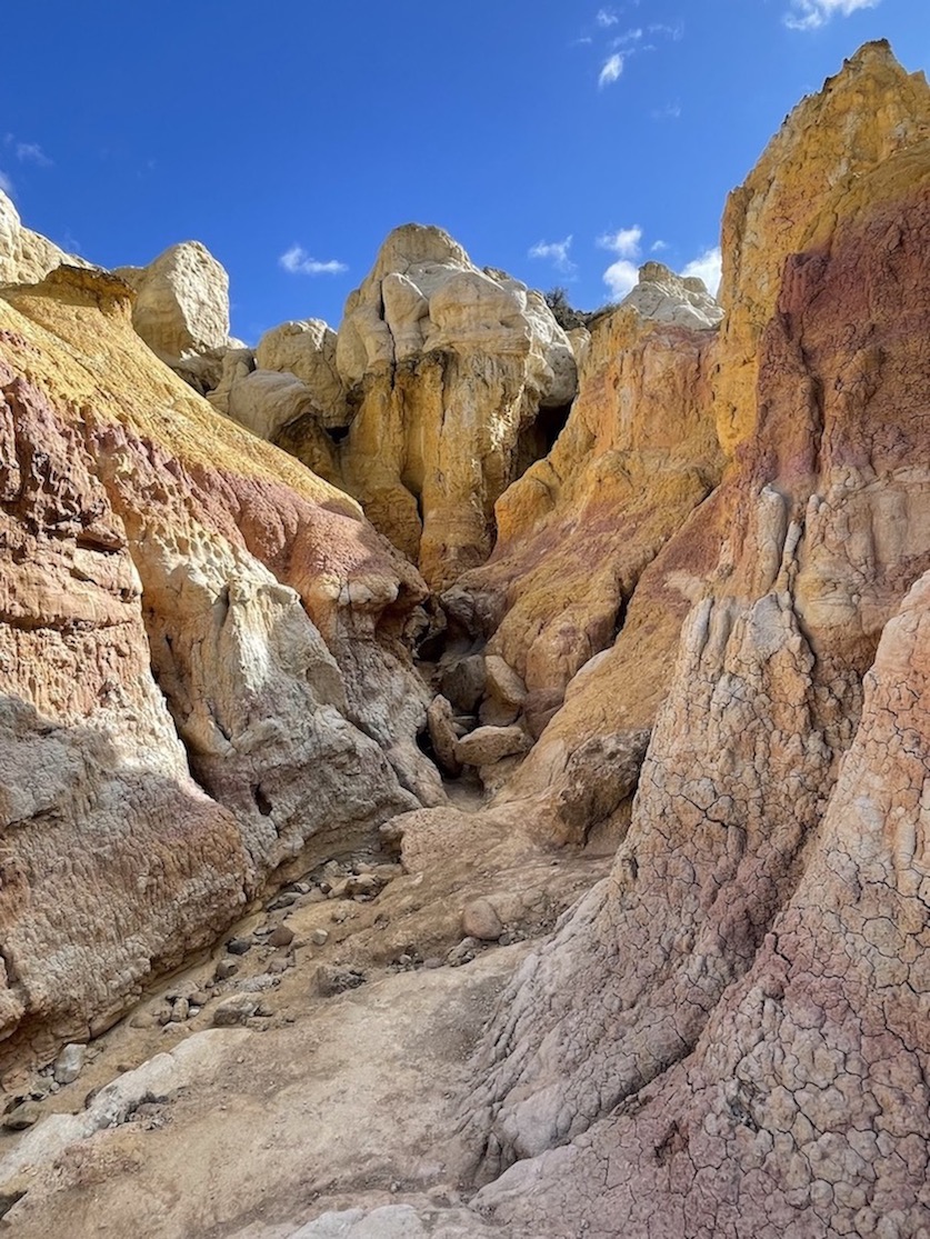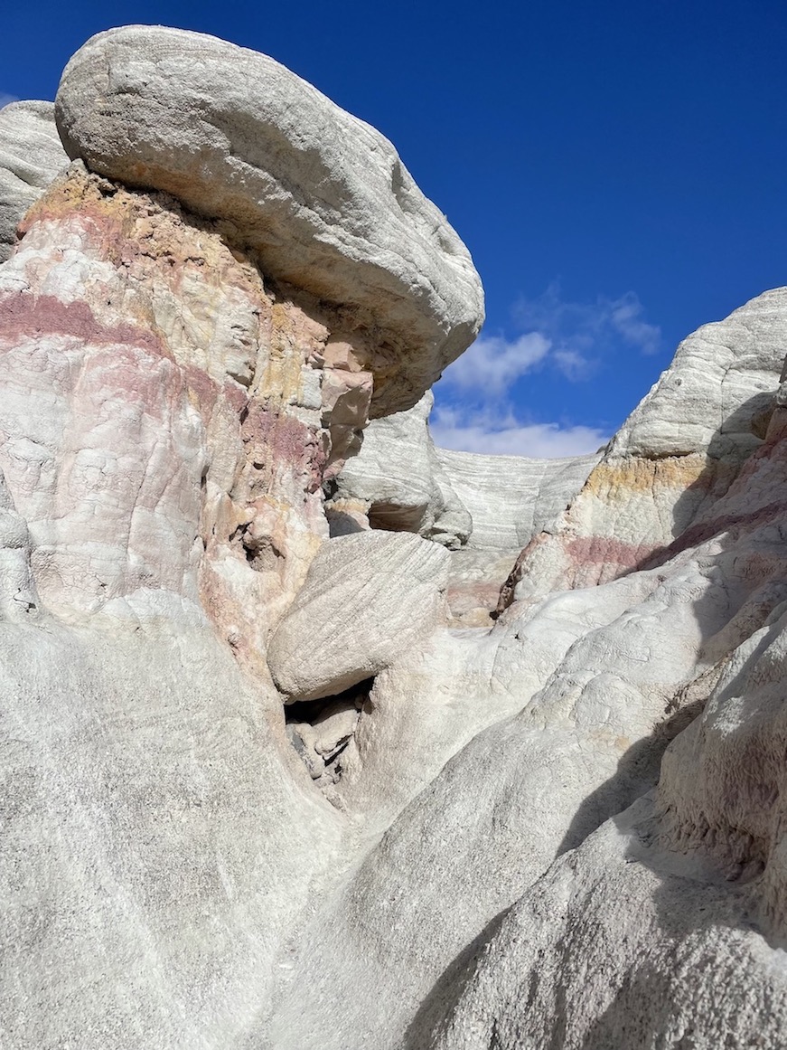 Hues of red, pink, and orange form stripes across strange, precarious white rock formations. You’re allowed to dip into and out of gullies and slot canyons to investigate, though there are clear signs alerting you as to which areas are off-limits because of the fragility of this ancient terrain.