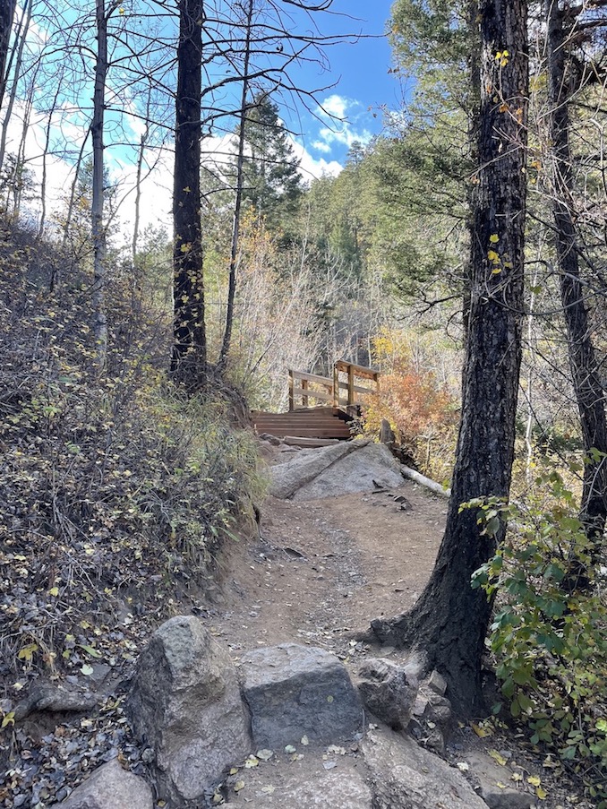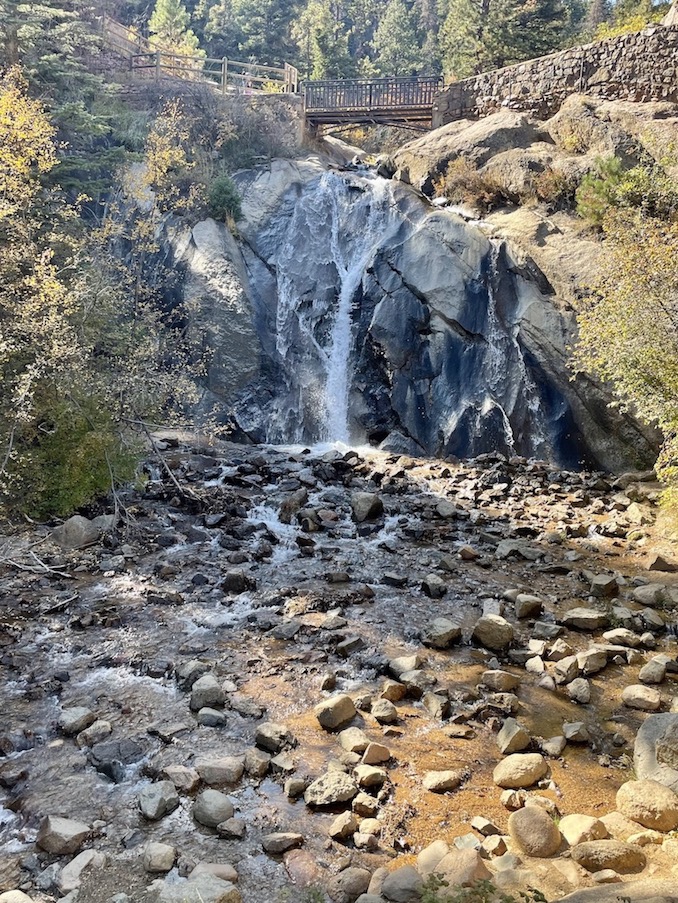 Broadmoor Seven Falls: $18. Hours vary frequently throughout the year. Current hours are here and an example of seasonal hours can be found here. Waterfalls may not be flowing heavily late in the season. Not to be confused with the Seven Bridges Trail in North Cheyenne Cañon Park.