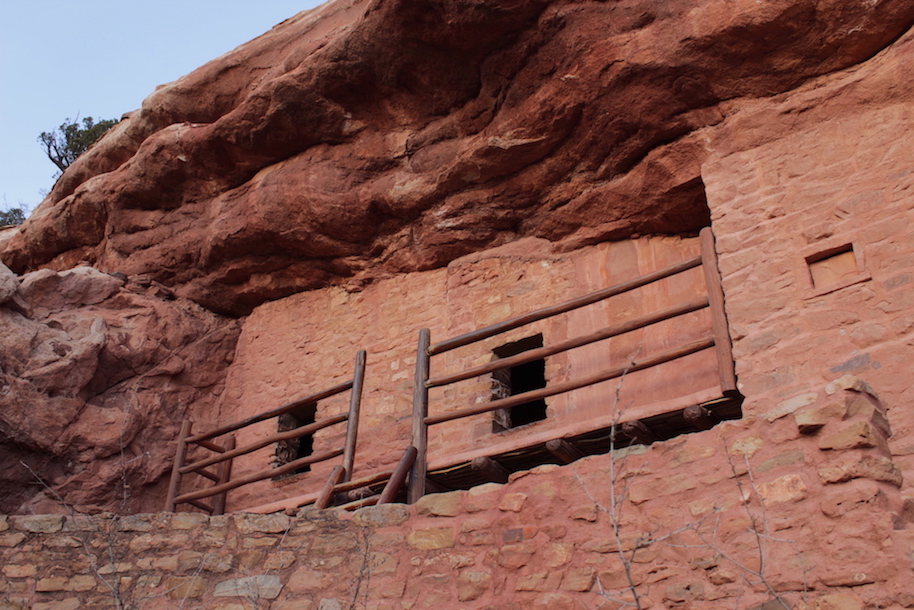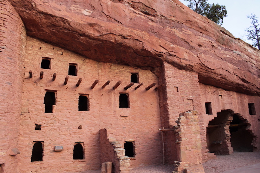 I have seen Ancestral Puebloan cliff dwellings at Mesa Verde National Park, Chaco Canyon, and elsewhere throughout the Four Corners, so I was surprised to find that there is a cliff dwelling site as far north as Manitou Springs. It turns out this is because masonry from a collapsed pueblo at McElmo Canyon near Cortez, Colorado was allegedly transported to Manitou in 1904 to create this privately owned attraction. The dwelling is part replica and part reconstruction. Visitors can walk through the 40 room cliff dwelling and experience what it might have been like to live as part of an Ancestral Puebloan community in 1200-1300AD.